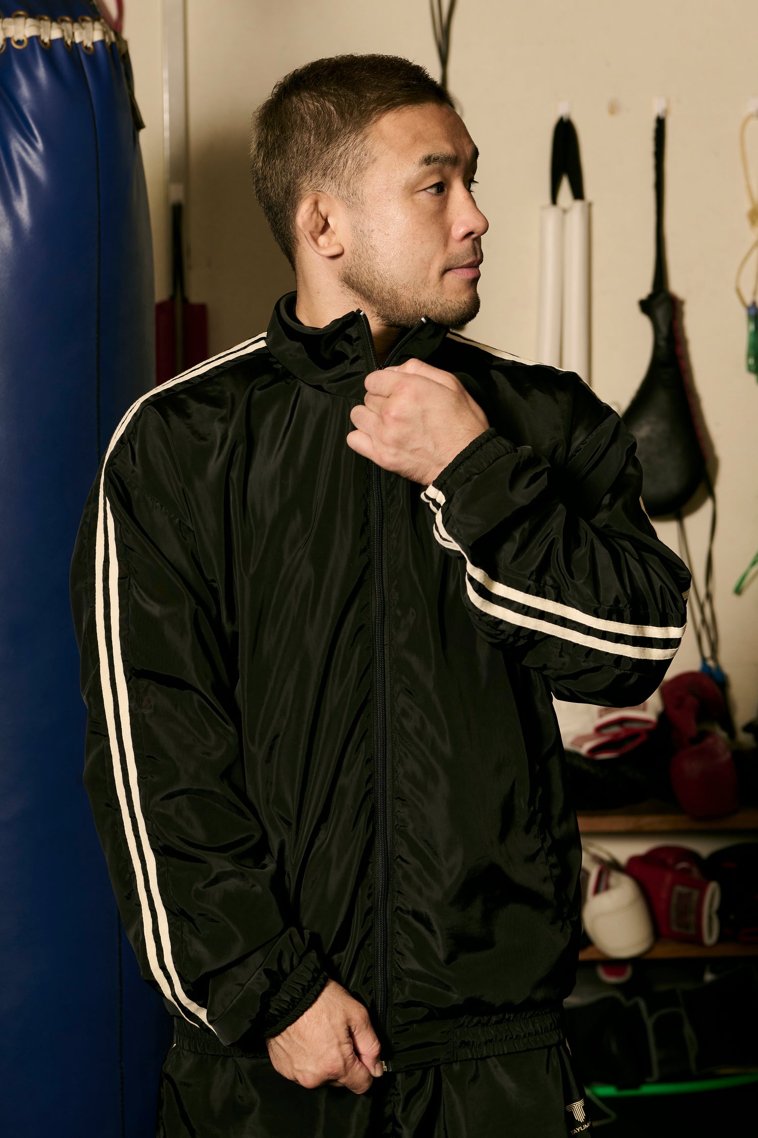 トレーニングの行き帰りや、屋外でのウォームアップを快適にサポートします。日本の美意識を反映した計算されたミニマルなデザインは、ストリートにも馴染む上品さ。側面のラインと、控え目ながら洗練されたアクセントとなるロゴが、着用者に着た瞬間に存在感が伝わる上質なデザインをもたらします。