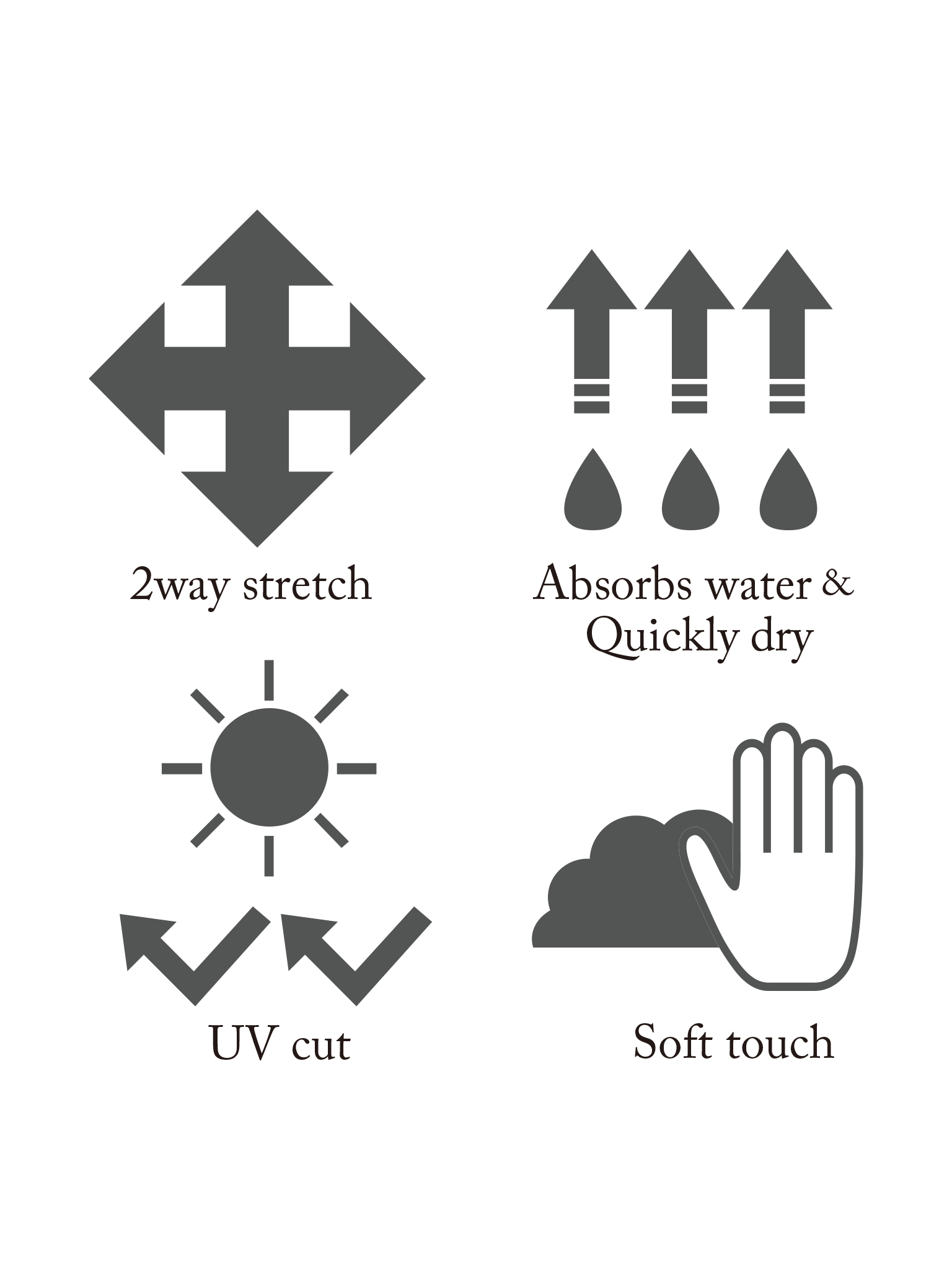 2WAYストレッチの高い伸縮性と吸水速乾性